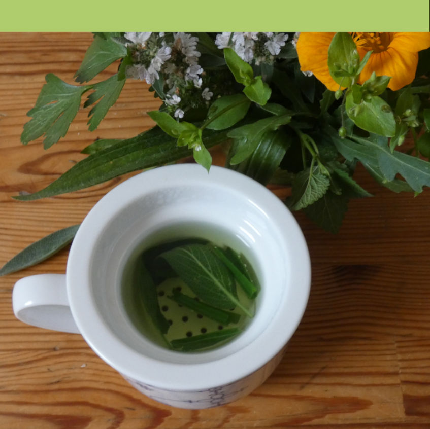 Schnittlauch und Petersilie, dazu Lavendel und Salbei? Vielleicht nur optisch eine gute Kombination. Das Erscheinungsbild unseres Sträußchens wandelt sich mit jedem weiteren Nutzen, wenn zum Beispiel die Salbeiblätter oder der Lavendel das Sträußchen verlassen und ziehen, im Tee nämlich. Die letzten Kräuter kommen fein gehackt auf die Kartoffeln und schon ist wieder Platz für ein frisches, vielleicht ganz anderes Sträußchen, eben genau nach unserem Bedarf.