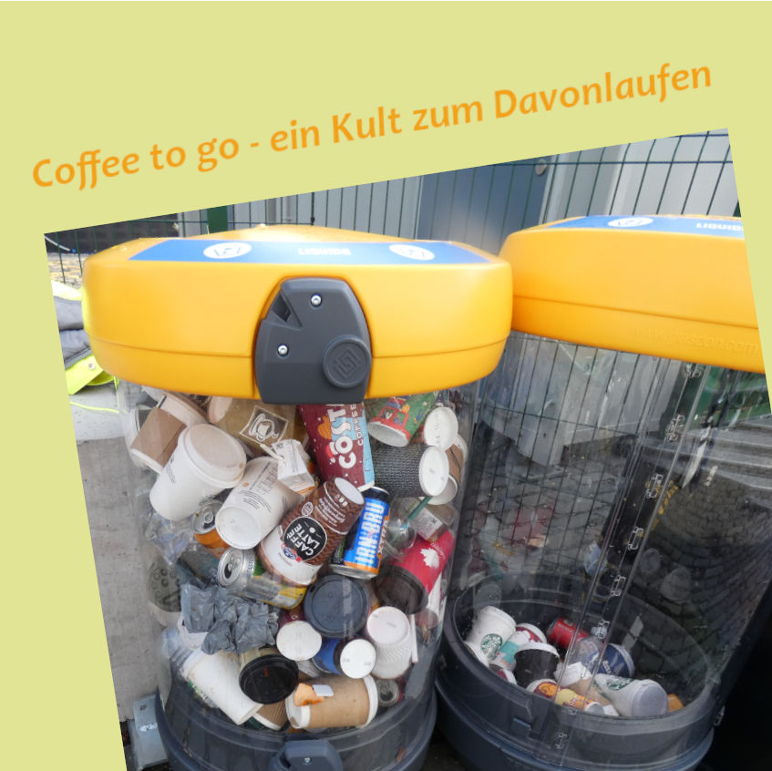 Haben Sie sich auch schon einmal gefragt, wieso in Deutschland so viele Menschen mit ihrem Kaffee lieber gehen, statt zu bleiben? Einen Becher Kaffee mit sich herumzutragen und laufend daraus zu trinken ist mega-unpraktisch. Der Deckel verhindert zwar das Überschwappen, aber auch das Abkühlen des Heißgetränks und schon mit dem ersten Schlückchen ist die Schnute verbrüht. Trotzdem werden in Deutschland 320.000 Einwegbecher mit Heißgetränken über die Theke gereicht, und das stündlich! 2,8 Mrd. Becher pro Jahr! Ein Müllberg, ein riesiges Restmüllgebirge das i.d.R. in der Müllverbrennung landet. Warum?