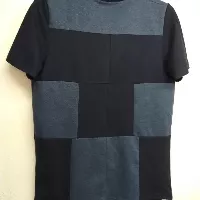 Die Zuschnitt-Abfälle werden auf kreative Weise in immer neuen Mustern in einem Patchwork-Verfahren zusammengesetzt. Je nachdem, welche Zuschnitt-Reste vorliegen, entstehen auf diese Weise individuelle Unikate. Diese Einzelstücke herzustellen, ist sehr aufwendig, macht aber großen Spaß, weil viel Kreativität gefordert ist. Die Arbeit in der Produktion wird damit angenehm bereichert. Graphical Art Shirts entstehen immer dann, wenn in der Serienproduktion nicht viel zu tun ist - es können also Leerlauf-Zeiten dadurch ein wenig gefüllt werden.